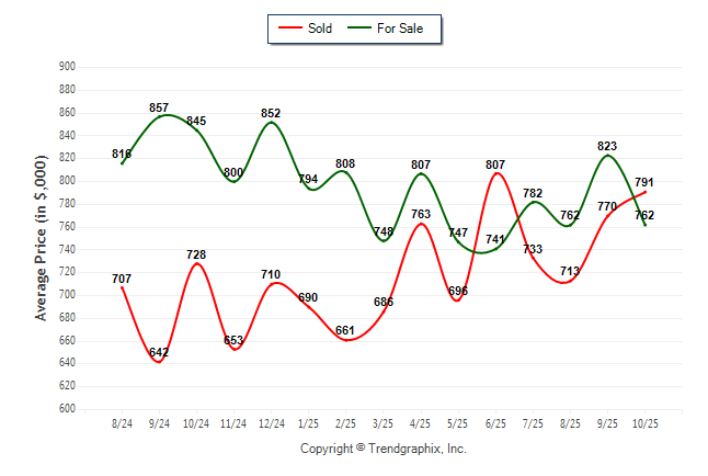 October 2025 Average For Sale Price was Neutral and Average Sold Price was Appreciating**