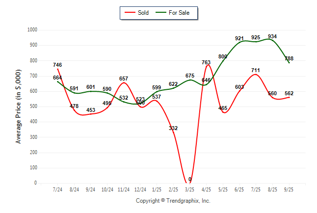 September 2025 Average For Sale Price was Neutral and Average Sold Price was Neutral**