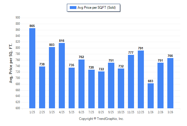 March 2026 Average Sold Price per Square Footage was Neutral**
