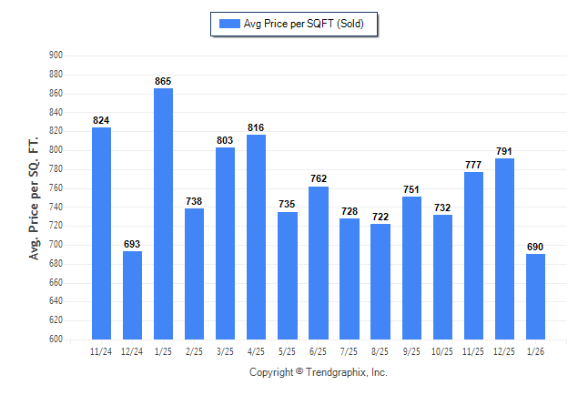 January 2026 Average Sold Price per Square Footage was Neutral**