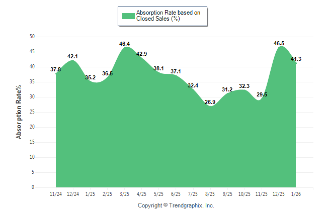 Curnt vs. Same Month 1 Yr Ago: Absorption Rate (Closed Sales) %