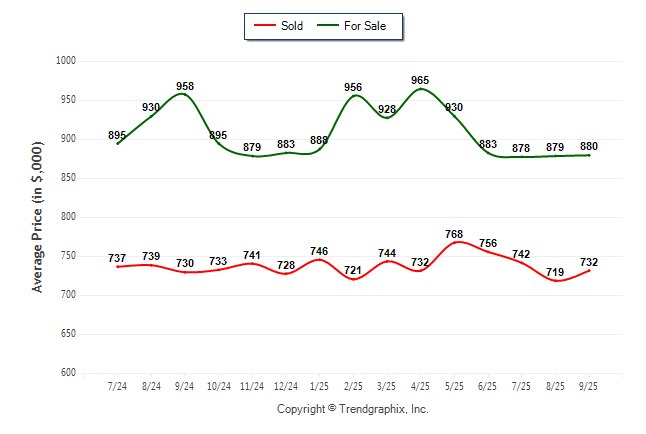 September 2025 Average For Sale Price was Neutral and Average Sold Price was Neutral**