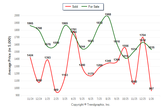 January 2026 Average For Sale Price was Neutral and Average Sold Price was Depreciating**