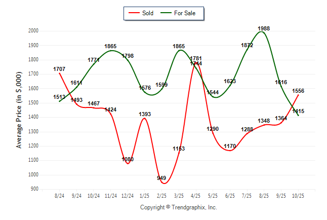 October 2025 Average For Sale Price was Depreciating and Average Sold Price was Appreciating**