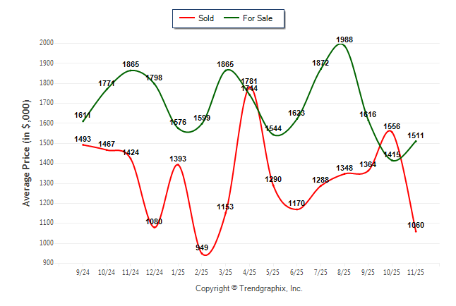 November 2025 Average For Sale Price was Neutral and Average Sold Price was Neutral**