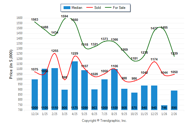 February 2026 Median Price was Neutral, Avg. For Sale Price was Neutral, and Avg. Sold Price was Neutral**