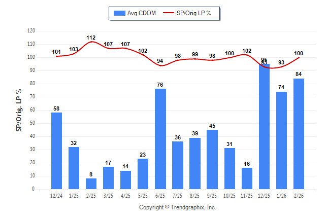 February 2026 Average Continuous Days on Market trend Remains Steady and Sold/Original List Price Ratio Remains Steady**