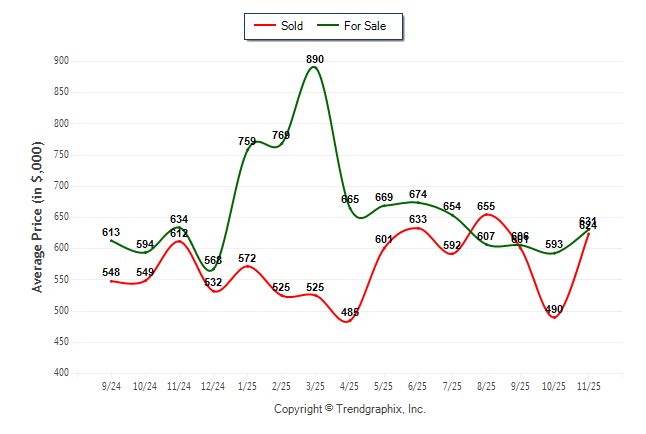 November 2025 Average For Sale Price was Neutral and Average Sold Price was Neutral**