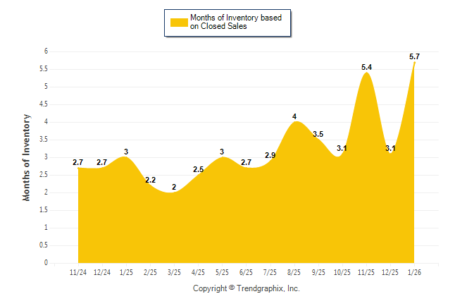 Curnt vs. Same Month 1 Yr Ago: Months of Inventory (Closed Sales)