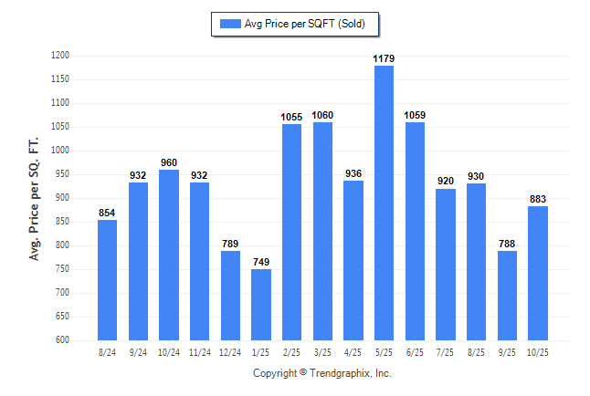 October 2025 Average Sold Price per Square Footage was Neutral**