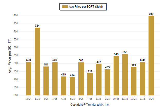 February 2026 Average Sold Price per Square Footage was Appreciating**