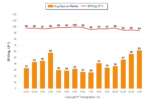 January 2026 Average Days on Market trend was Rising and Sold/Original List Price Ratio was Falling**