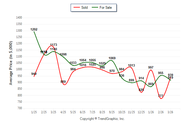 March 2026 Average For Sale Price was Neutral and Average Sold Price was Neutral**