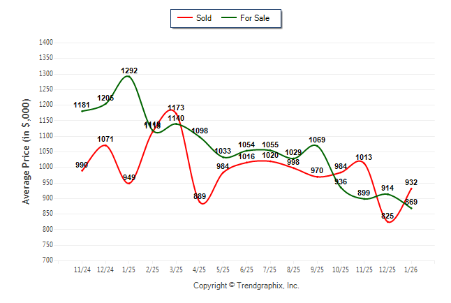 January 2026 Average For Sale Price was Depreciating and Average Sold Price was Neutral**