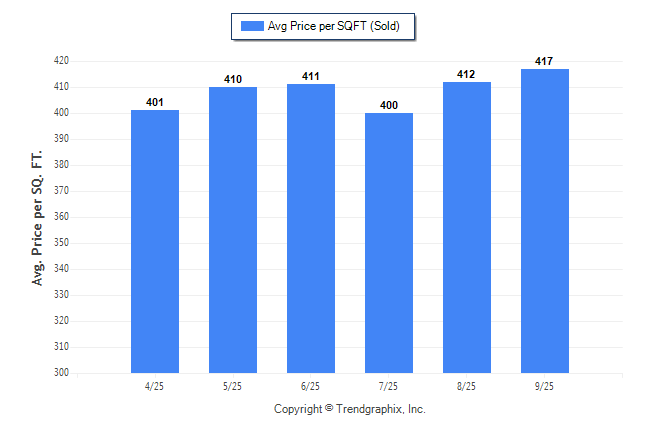 September 2025 Average Sold Price per Square Footage was Appreciating**