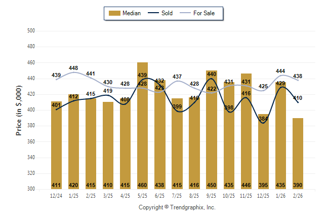 February 2026 Median Price was Depreciating, Avg. For Sale Price was Neutral, and Avg. Sold Price was Neutral**