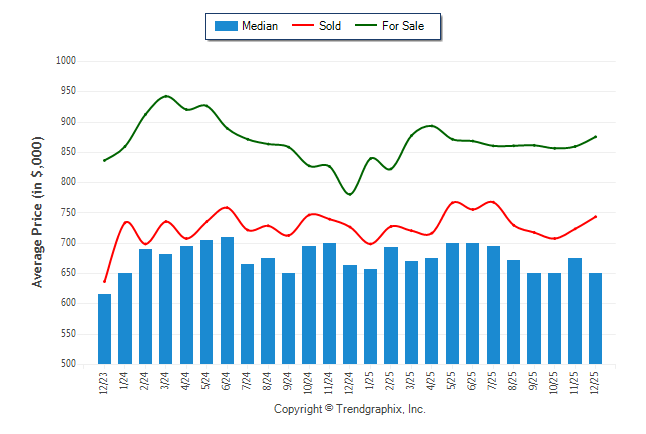 December 2025 Median Price was Depreciating, Avg. For Sale Price was Appreciating, and Avg. Sold Price was Neutral**