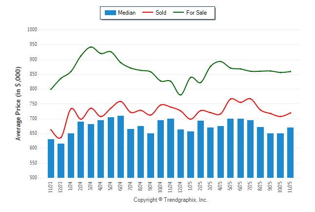November 2025 Median Price was Neutral, Avg. For Sale Price was Neutral, and Avg. Sold Price was Neutral**