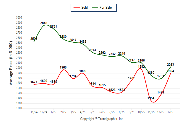 January 2026 Average For Sale Price was Neutral and Average Sold Price was Neutral**