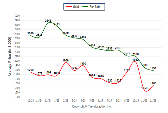December 2025 Average For Sale Price was Depreciating and Average Sold Price was Neutral**