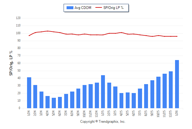 January 2026 Average Continuous Days on Market trend was Rising and Sold/Original List Price Ratio was Falling**