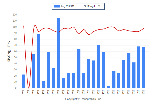 December 2025 Average Continuous Days on Market trend Remains Steady and Sold/Original List Price Ratio Remains Steady**