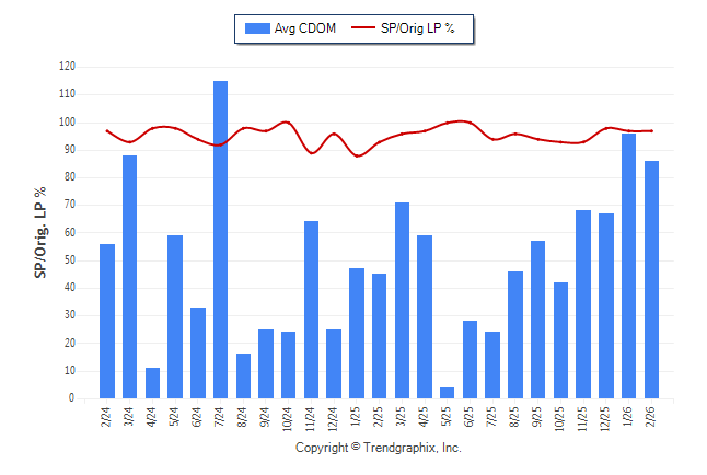 February 2026 Average Continuous Days on Market trend Remains Steady and Sold/Original List Price Ratio Remains Steady**