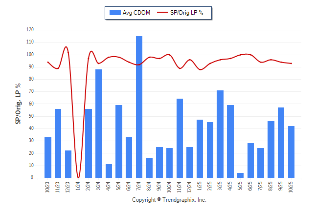 October 2025 Average Continuous Days on Market trend Remains Steady and Sold/Original List Price Ratio was Falling**