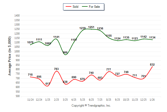 January 2026 Average For Sale Price was Neutral and Average Sold Price was Neutral**