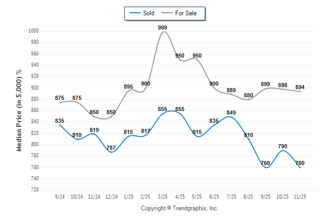 November 2025 Median Active was Neutral and Median Sold Price was Depreciating**