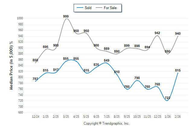 February 2026 Median Active was Neutral and Median Sold Price was Neutral**