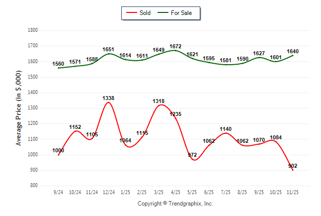 November 2025 Average For Sale Price was Appreciating and Average Sold Price was Depreciating**