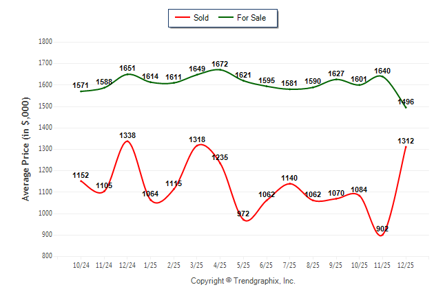 December 2025 Average For Sale Price was Depreciating and Average Sold Price was Appreciating**
