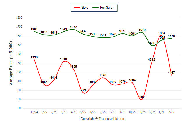 February 2026 Average For Sale Price was Neutral and Average Sold Price was Neutral**