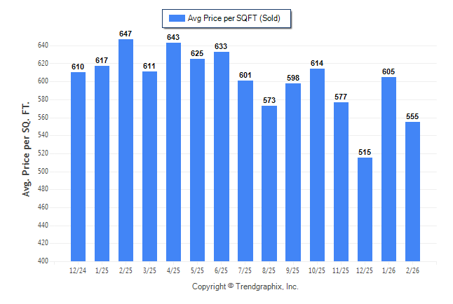 February 2026 Average Sold Price per Square Footage was Neutral**