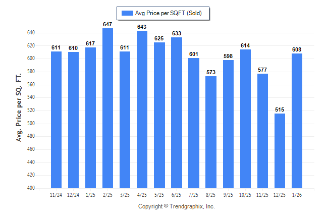 January 2026 Average Sold Price per Square Footage was Neutral**