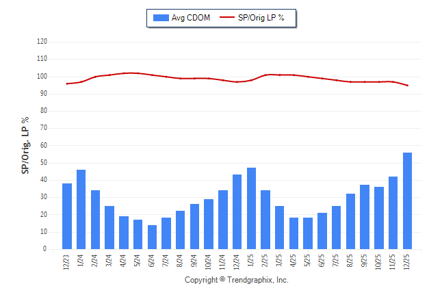 December 2025 Average Continuous Days on Market trend was Rising and Sold/Original List Price Ratio was Falling**