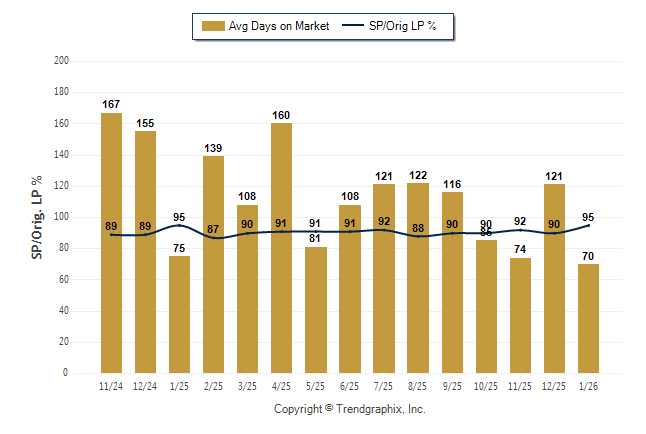 January 2026 Average Days on Market trend was Falling and Sold/Original List Price Ratio was Rising**