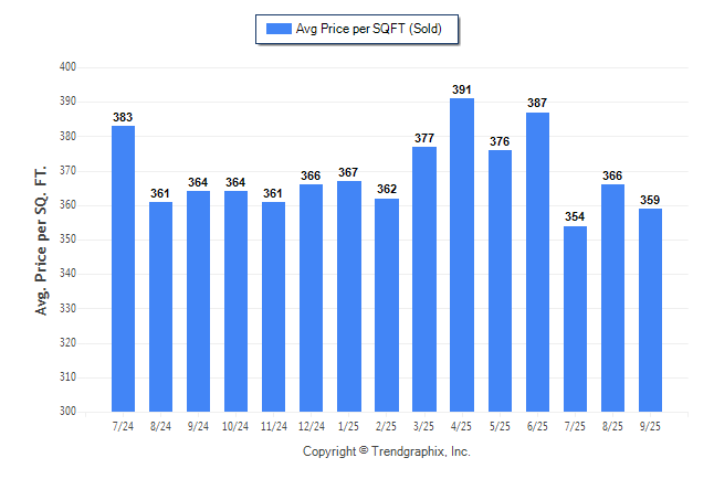 September 2025 Average Sold Price per Square Footage was Neutral**