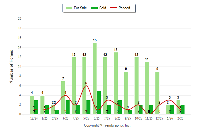 Curnt vs. Prev Month: For Sale up50% | Sold 0% | Pended down-66.7%