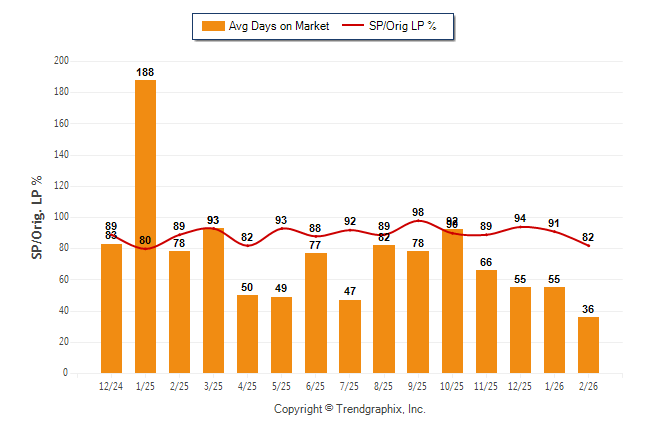 February 2026 Average Days on Market trend was Falling and Sold/Original List Price Ratio was Falling**