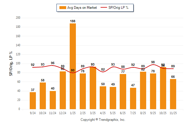 November 2025 Average Days on Market trend Remains Steady and Sold/Original List Price Ratio Remains Steady**