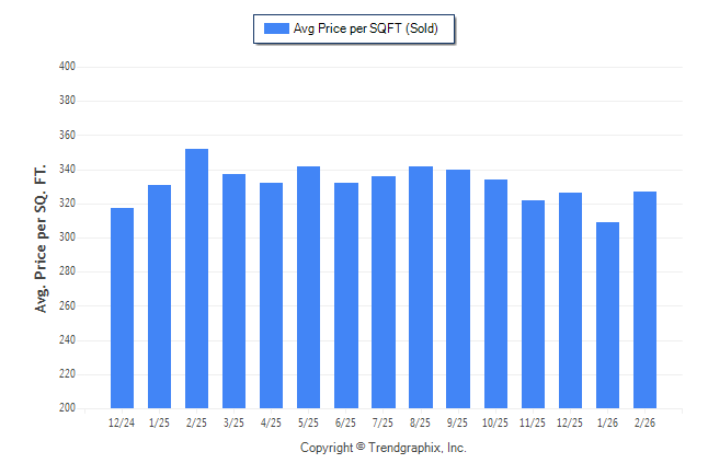 February 2026 Average Sold Price per Square Footage was Neutral**