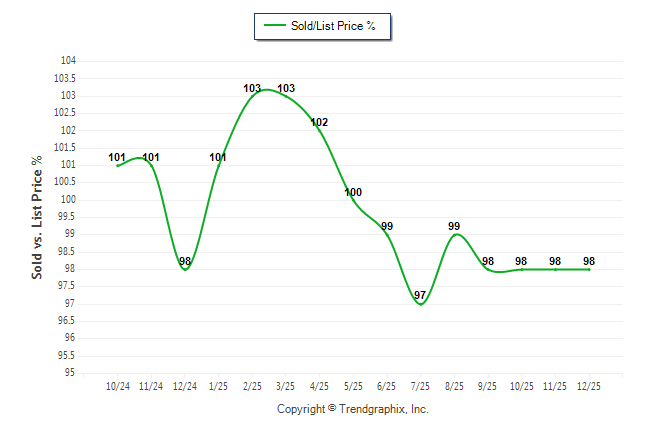 December 2025 Sold/List Price Ratio Remains Steady**
