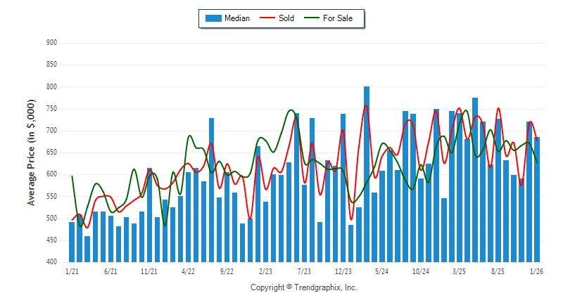 January 2026 Median Price was Neutral, Avg. For Sale Price was Depreciating, and Avg. Sold Price was Neutral**