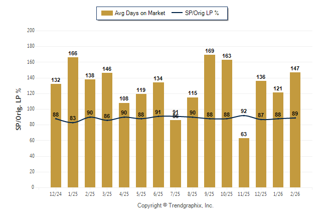 February 2026 Average Days on Market trend Remains Steady and Sold/Original List Price Ratio Remains Steady**