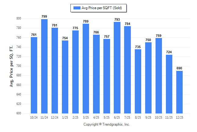 December 2025 Average Sold Price per Square Footage was Depreciating**