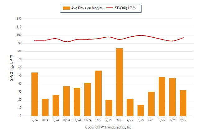 September 2025 Average Days on Market trend Remains Steady and Sold/Original List Price Ratio Remains Steady**