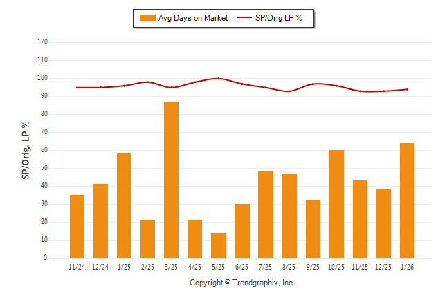 January 2026 Average Days on Market trend Remains Steady and Sold/Original List Price Ratio Remains Steady**