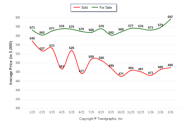 March 2026 Average For Sale Price was Appreciating and Average Sold Price was Appreciating**